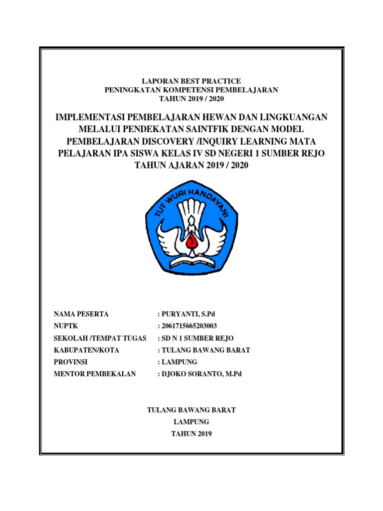 Dengan selesainya penulisan best practice ini penulis mengucapkan terima kasih pada semua pihak yang telah membantu dan memberikan masukan dalam pembuatan best practice ini, terutama kepada: Makalah berupa tinjauan ilmiah gagasan/pengalaman terbaik (best practice) di bidang pendidikan formal dan pembelajaran pengertian makalah tinjauan ilmiah adalah karya tulis guru yang berisi ide/gagasan penulis dalam upaya mengatasi berbagai masalah pendidikan formal dan pembelajaran yang ada di satuan pendidikannya (di sekolah/ madrasahnya). Makalah best practice kepala sekolah berprestasi kabupaten demak 2016. Pengertian best practice, best practice (disebut juga praktik baik) adalah istilah yang digunakan untuk mendeskripsikan pengalaman terbaik tentang keberhasilan seseorang dalam melaksanakan tugas profesinya. Makalah model model pembelajaran beserta sintaknya karya. Best practice ini bisa berupa upaya peningkatan dalam supervisi akademik kepemimpinan pembelajaran dan kewirausahaan penelitian tindakan sekolah dan pengembangan manajemen berbasis sekolah dan. Berbagi informasi dan file berkas administrasi sekolah madrasah jenjang paud tk sd mi. Penelitian best practice pendidikan agama islam ini menggunakan metode deskriptif kualitatif. Guru, kepala sekolah, dan pengawas sekolah tentu memiliki banyak pengalaman yang berhasil mengatasi berbagai permasalahan pendidikan dalam menjalankan tugasnya. Latar belakang masalah guru sesungguhnya dan seharusnya merupakan lapangan kerja profesi yang mampu melahirkan kepuasan dan kebahagiaan lahir batin. Makalah diri /best practice makalah diri. Best practice ini bisa berupa upaya peningkatan dalam supervisi akademik, kepemimpinan pembelajaran dan kewirausahaan, penelitian tindakan sekolah. Sekian ulasan tentang contoh karya tulis best practice guru pembelajar yang telah admin jelaskan.