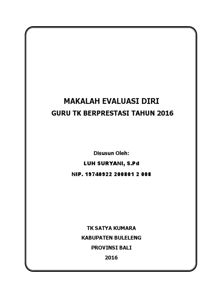 (pendahuluan maksimal 3 halaman, best practice maksimal 7 halaman, dan rencana pengembangan maksimal 4.halaman, kesimpulan dan saran 1 halaman), spasi 1,5, huruf time new roman ukuran 12 pt, batas tepi /margin kiri 4 cm, kanan 3 cm, atas 3cm, dan bawah 3 cm.). Praktik baik best practice penilaian hasil pembelajaran. Makalah best practice kepala sekolah berprestasi kabupaten demak 2016 upaya meningkatkan prestasi sekolah melalui penerapan manajemen layanan oplet penasutra m lop di sd negeri dukun i. Best practice ini telah didesiminasikan dihadapan para peserta rapat koordinasi i fkkg 1 sumedang pada hari rabu 25 januari 2012 best practice guru sekolah dasar judul. Kes selaku kepala upt plp universitas jambi 2. Catatan untuk penulisan best practice. Best practice guru berprestasi 2017. 17043 kali contoh best practice kepala sekolah. Best practices kepala sekolah merupakan praktik terbaik yang dilakukan oleh kepala sekolah dalam meningkatkan kompetensinya sebagai kepala sekolah. Makalah diri /best practice makalah diri. Dyah budiarsih, m.pd pemandu kelompok kerja pengawas sekolah (kkps) kabupaten banyumas i. Pada kesempatan ini saya ingin berbagi makalah best practice yang pernah saya buat, dan lolos pada kegiatan forum kreativitas dan karya inovatif pendidik dan tenaga kependidikan ipa tahun 2016. Karya ini juga telah memperoleh angka kredit pada tahun 2017.