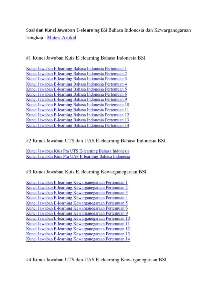 Kunci Jawaban E Learning Bsi Bahasa Indonesia Pertemuan 5 - Https Ejournal Bsi Ac Id Ejurnal Index Php Bianglala Article Download 2806 1830 - indonesia sebagai negara yang berdaulat memiliki landasan fundamental yaitu.. Hai semua kali ini admin akan share kunci jawaban elearning bahasa indonesia pertemuan ke 5. kunci jawaban soal e learning bahasa indonesia bsi dan nusa mandiri pertemuan 5 update 2018 update 2018 100 benar. Isky blog 5 jul 2018 0 1. kunci jawaban e learning bsi bahasa indonesia pertemuan 6. kunci jawaban elearning bsi bahasa indonesia kuis pra uts diterbitkan 08 12.